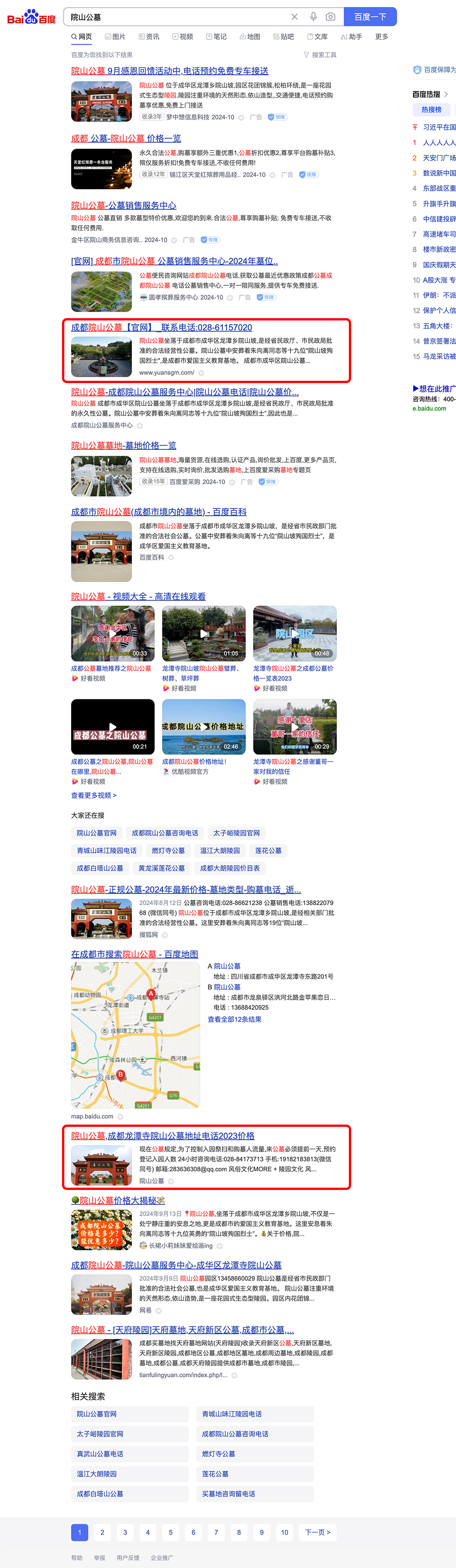 院山公墓百度搜索关键词首页展示